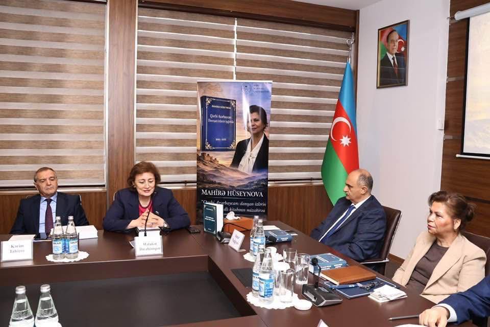 Tədbirin sonunda ADPU-nun Beynəlxalq əlaqələr üzrə prorektoru, filologiya elmləri doktoru, professor, Prezident təqaüdçüsü, Əməkdar müəllim, QAİ İdarə Heyətinin üzvü Mahirə Hüseynova çıxış edərək müəllifi olduğu kitab barədə ətraflı məlumat verib. O tədqiqat əsərində Qərbi Azərbaycanın tarixi-mədəni irsi, dil, folklor və milli-mənəvi dəyərlərinin elmi əsaslarla araşdırıldığını diqqətə çatdırıb, bu mövzuda aparılan tədqiqatların əhəmiyyətini vurğulayıb. Mahirə Hüseynova kitabın təqdimatının keçirilməsinə görə BSU-nun rektoru A.Nağıyevə təşəkkürünü bildirib, universitet rəhbərliyinin Qərbi Azərbaycanla bağlı elmi təşəbbüslərə verdiyi töhfəni yüksək qiymətləndirib.