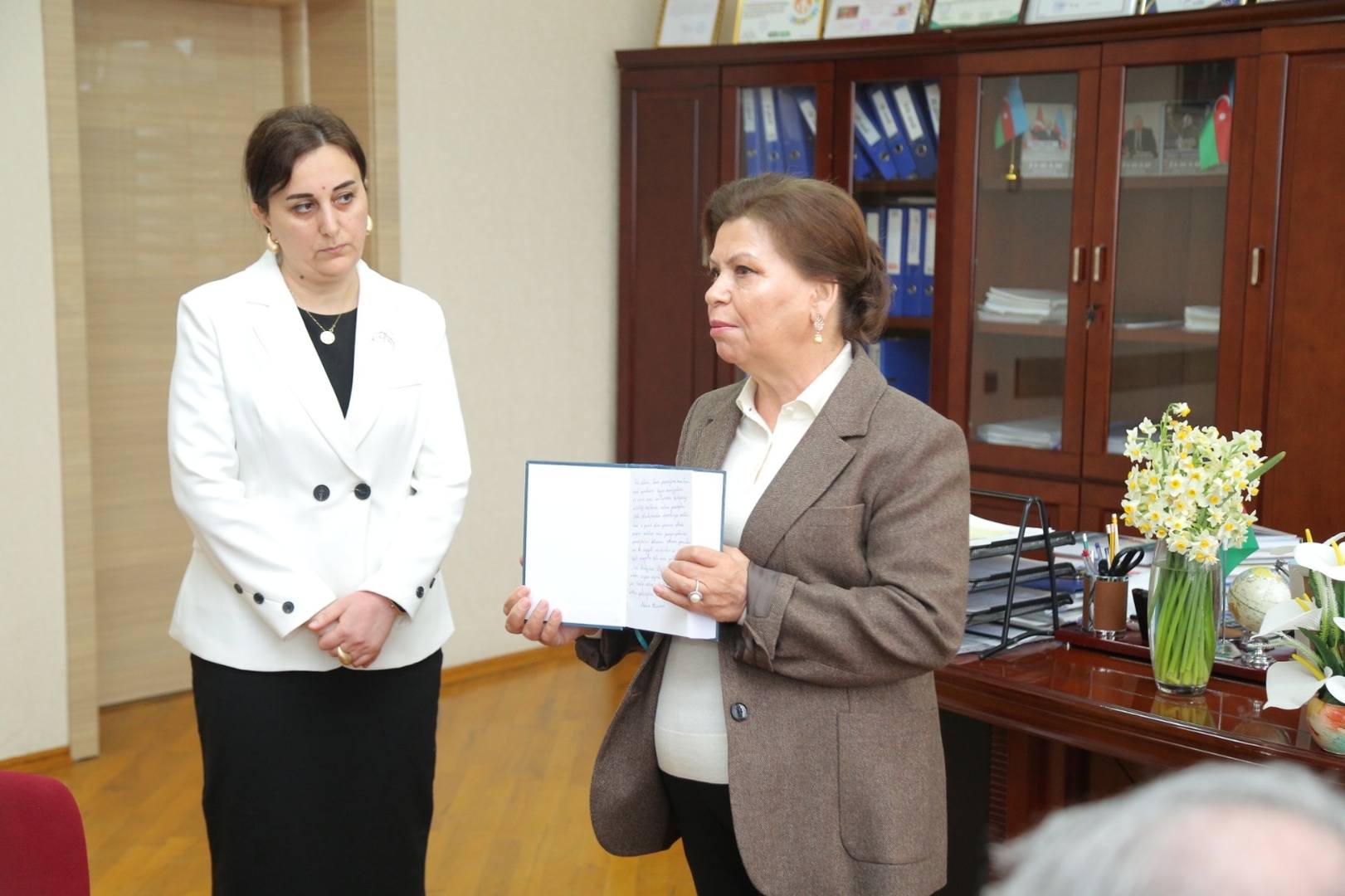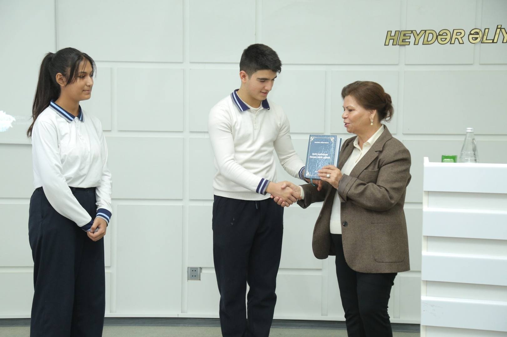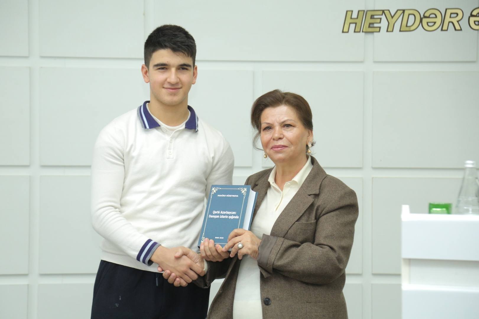 Qərbi Azərbaycan icmasının idarə heyətinin üzvü, ADPU-nun beynəlxalq əlaqələr üzrə prorektoru, professor Mahirə Hüseynova dərs zamanı aparılan diskussiyada fəallıq göstərən şagirdlərdən bir neçəsinə Qərbi Azərbaycana həsr olunmuş “Qərbi Azərbaycan: Danışan izlərin işığında” adlı kitablarını hədiyyə etdi.