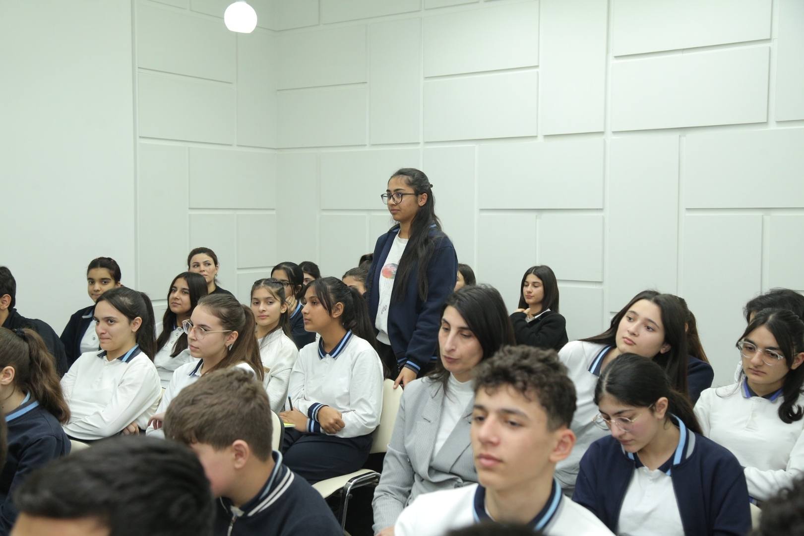 “Dərs”in əvvəlində Azərbaycan Respublikasının Dövlət Himni səsləndirildi. Ümummilli lider Heydər Əliyevin və vətənimizin azadlığı, suverenliyi uğrunda canlarından keçən bütün şəhidlərimizin əziz xatirəsi bir dəqiqəlik sükutla yad edildi.